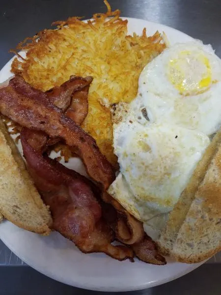 Her menu consisted of pancakes, biscuits and gravy, scrambled eggs, sausage links, and bacon.